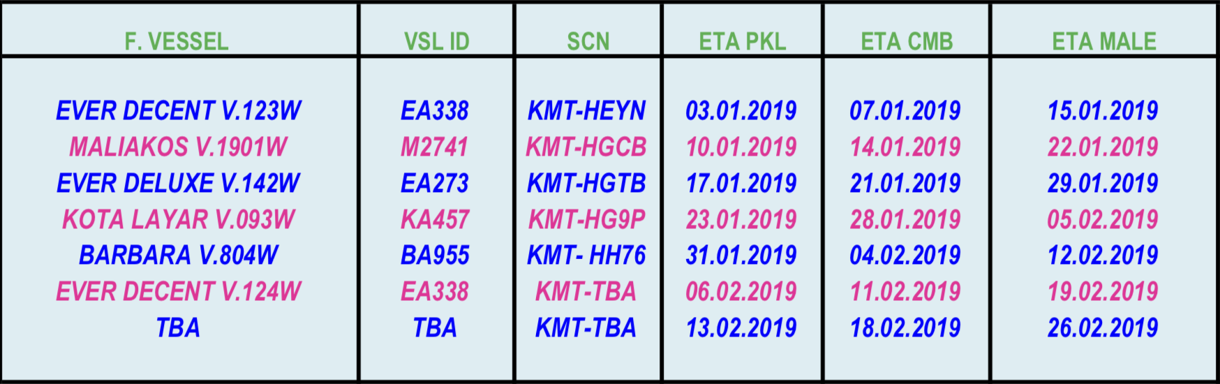 - Liner Agent for Lily Line No.1 in shipping cargo to Maldives & Colombo